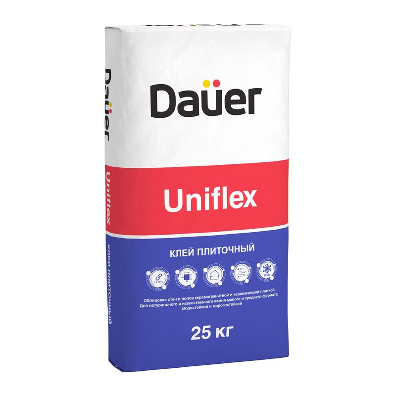 - Dauer Uniflex хорошо зарекомендовал себя в сложных условиях эксплуатации. Он выдерживает до 50 циклов замерзания-оттаивания и подходит для помещений с высоким уровнем влажности.