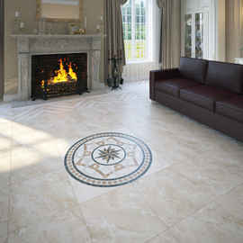 Панно из керамогранита на пол стоит дешевле каменных аналогов, а по характеристикам не уступает натуральному материалу: такая же высокая плотность, износостойкость и долговечность. Чаще всего оно имитирует натуральный камень.