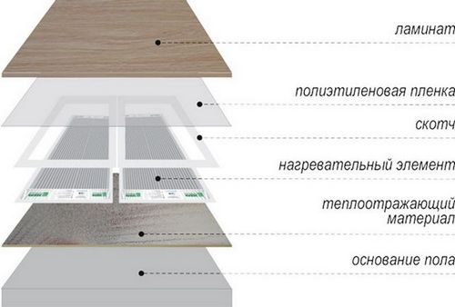 Инфракрасный теплый пол под ламинат имеет свою систему, в которую включены следующие элементы: